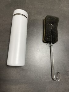 普段使っているスポンジをぎゅっと挟んで、水筒の奥まで届かせる。